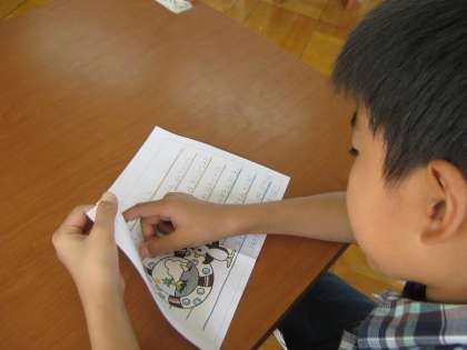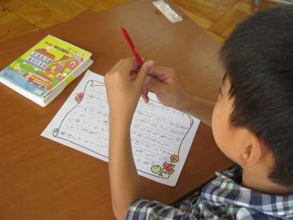 縦割りグループのリーダーの6年生から,「明日の運動会頑張ろうね。」という内容のお手紙をもらいました。本人にとっては,思いがけないとても丁寧に仕上げられた素敵なお手紙でした。何度も何度も読み返していました。そして,「返事を書く?」と尋ねると,「書きたい!」と大きな声で返事してくれました。