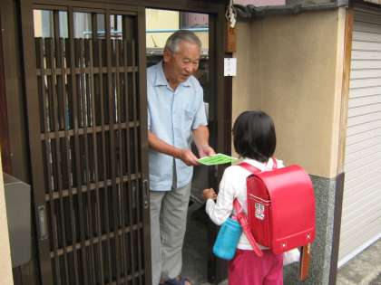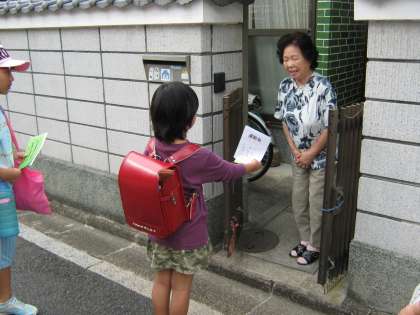 いよいよ明日は運動会です。先日,子どもたちは,地域の高齢者の方に運動会の招待状とプログラムを届けました。