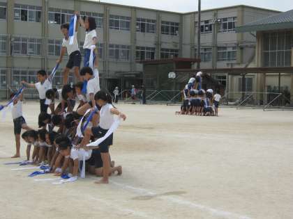いよいよ明日に迫った運動会。今日は最終の練習をしました。組体操の方も最終調整です。明日,最高の演技ができるように,さあ,明日頑張ろう。