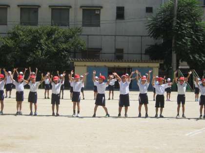 団体競技の入退場の練習です。