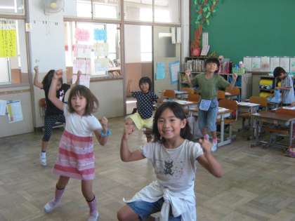 昼休みになると,教室から聞き覚えのある音楽が聞こえてきます。1年生からは「アセロラ体操」,3年生からは「ジンギスカン」。自主的に練習している姿がかっこいいです。