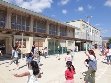 中間休みに全校ダンスの練習をしています。自由参加です。強制しないのがルールですが,集まりがちょっと少ないのが残念です。