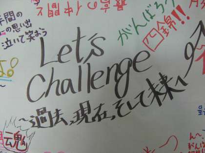 6年生の決意が書かれている大きな掲示物が玄関にありました。写真に写っているのは,真ん中のタイトルの部分だけです。明日,ご来校の際には是非全体をご覧ください。