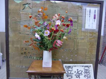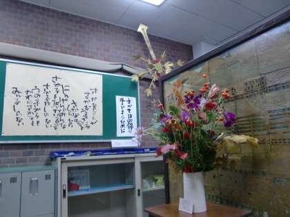 PTAから運動会用に花をいただき,いつものように玄関に飾りました。
