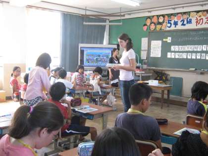 「Hi friends」の教科書を使って,今日はアルファベットに親しむ学習をしました。