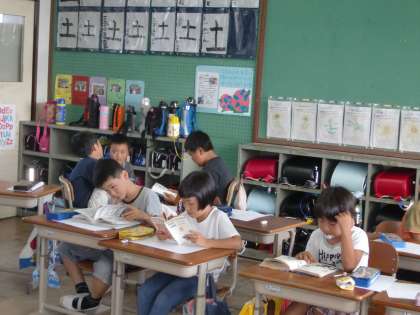 プリント学習を予定の時間よりも早く終えた子に,「残った時間を静かに過ごしましょう。どうしますか?」と尋ねると,「本,読んでもいいですか?」という声。読書に集中する子が何人もいて頼もしいかぎりでした。