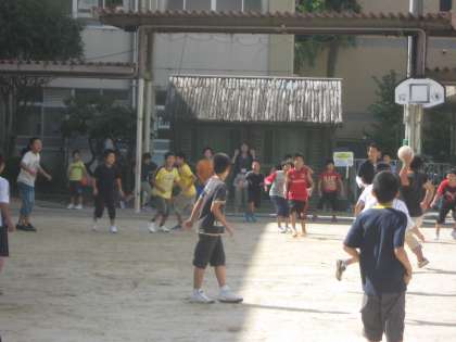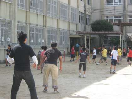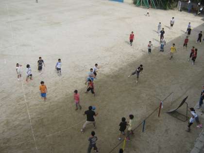 ドッジボールが盛んなのは本校の自慢ですが,このごろ,色々なパターンの対戦があります。今日は,4年生と5年生の合同チーム対6年生でドッジボールをしていました。先生方も入ってパワフルな昼休みの姿でした。