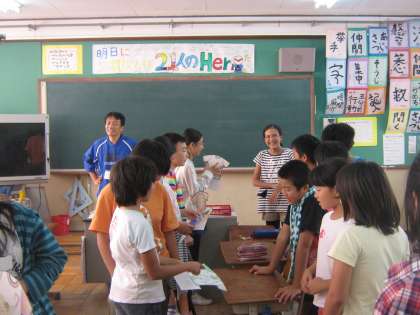 ついにそのTシャツが出来上がったとのことで,昼学習の時間に6年生にプレゼントしてくれました!