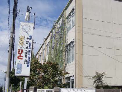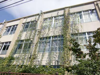 娘さんが本校の校舎を見上げてお母さんに言いました。