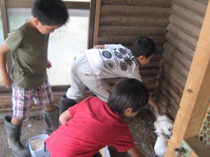 動物との「ふれあい会」が行われました。1年生と2年生がたくさん集まってとても賑やかでした。飼育委員会の児童にとっては,前期最後のイベントが大成功という感じでした。うさぎとウコッケイにとっては少し迷惑だったかもしれませんが・・・。