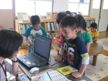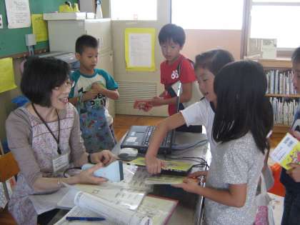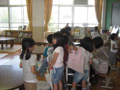 今までは,あまり「わくわくルーム」に本の返却や借り出しを来る児童がいなかったのですが,今日はたくさんの児童が集まっていました。図書支援員の方もうれしそうです。