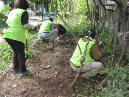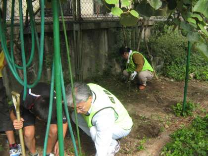 ビオトープの色々な植物も実りの秋を迎えています。みかんもたわわに出来ています。雑草をひいたり収穫し終えた場所を整理しました。