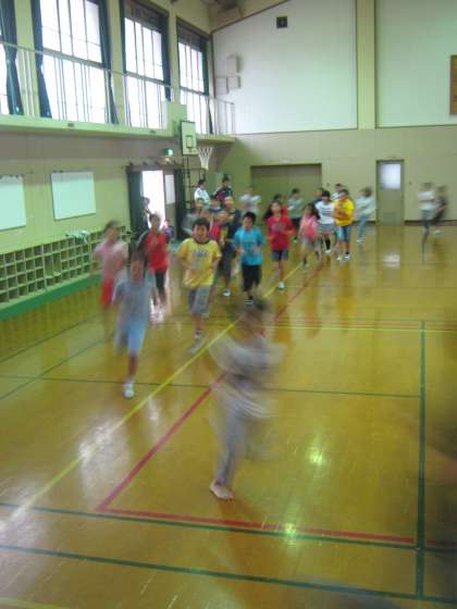 今日は朝ランニングできないなあと思っていたら,体育館で走りたいという声が上がりました。6年生が続々と体育館に集まってきます。