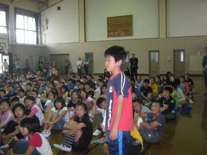 最後は1年生と2年生の朝会発表でした。ここでも6年生は活躍します。