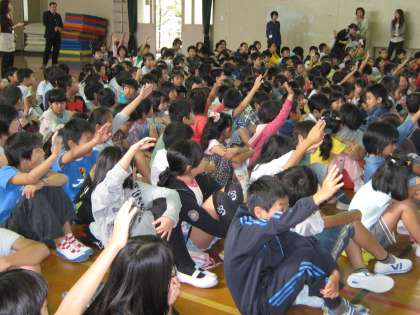 子どもたちは、とても静かに体育館に入ってきて並びました。
