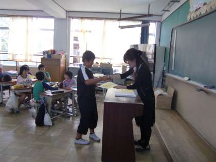 1組では一人ひとりと握手しながらの通知票渡しでした。