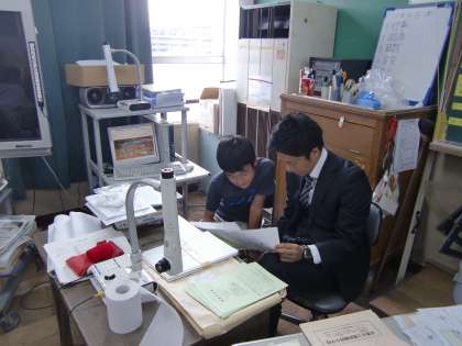 最後は6年生です。6年生でも他の学年同様,一人ひとりに成績の説明をして,さらなる意欲を引き出すための言葉がけをしています。