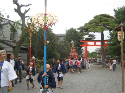 地域をまわる際は,剣鉾が神輿を先導します。