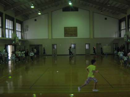 今日は朝から雨で,体育館でのランニングでした。