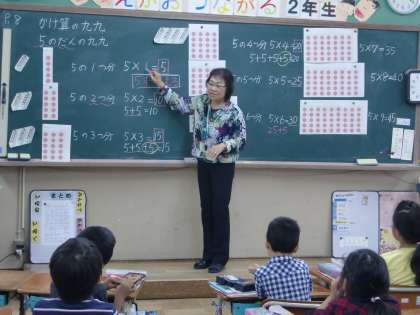かけ算の入り口の学習です。授業の準備が行き届いているかどうかは子どもたちの動きで分かります。