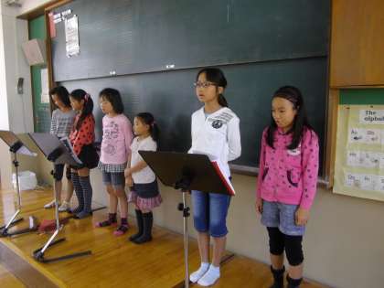 国際ルームに行ってみると,四錦音楽隊の子どもたちが歌やリコーダーの演奏の練習をしていました。