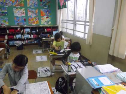 バランスを考えながら,一画一画を真剣に書いていく子どもたち。