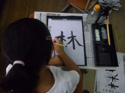 誰もいないわけではありません。27人全員が一つの文字を心をこめて書き写しています。