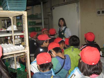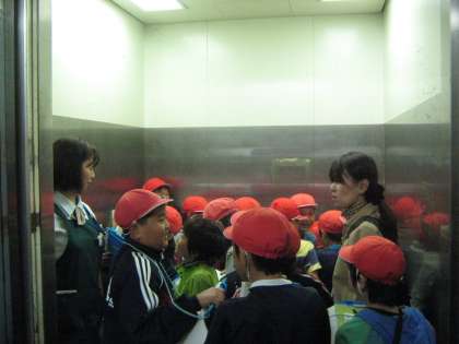 商品保存のための大きな冷蔵庫と冷凍庫にも入りました。また,24人の1クラスの子どもたちが一度に乗ることのできるエレベーターも体験しました。