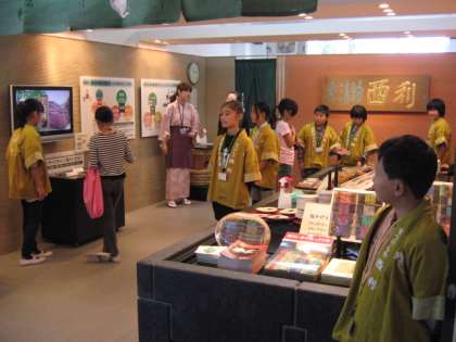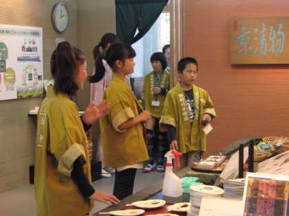 大きな声で「京つけもの」のよさをアピールし,呼び込みを行いました。試食もすすめ,たくさんのお客さんに来てもらっていました。