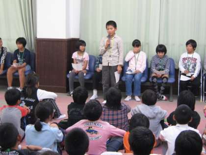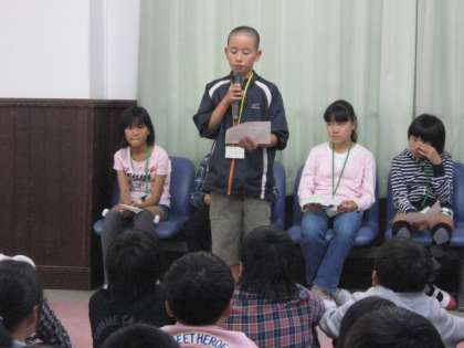 すっかり対応に慣れてきた子どもたち。ついに営業終了となりました。最後は,代表者から,本日の損益とよかったところなどの発表がありました。