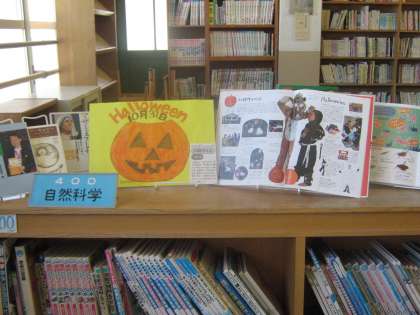 10月末の「ハロウイン」に合わせて,図書支援員さんが図書室を飾りつけてくださいました。また,図書ボランティアさんが本の見出しを作ってくださっています。