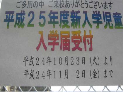 来年度の1年生の入学手続きを今日から受け付けています。11月2日までとなっています。