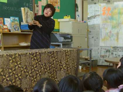 霧吹きで「アート」の字が浮かび上がるようにしてのサプライズ!お話にいつも以上に子どもたちは引き込まれました。