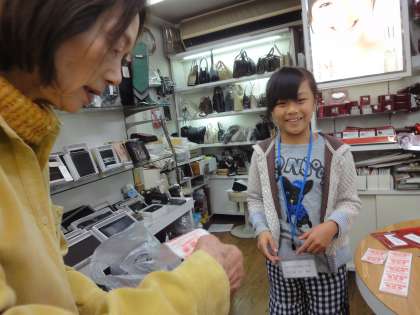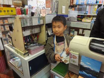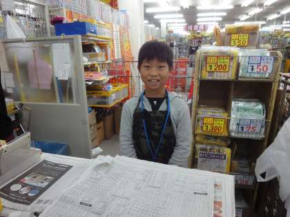 お客さんとの接客で,レジでのお金のやりとりもさせてもらいました。いつも笑顔は絶やしません。