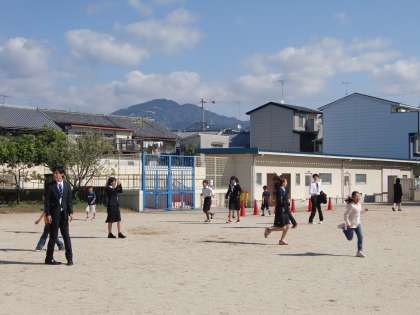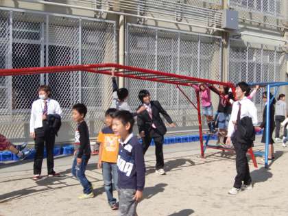 子どもたちと鬼ごっこをしている学生さんがいました。子どもたちの笑顔が普段以上にキラキラして見えます。汗かくことを全くいとわない学生さんたちの姿勢,はじける子どもたちの笑顔,柔らかな秋の日差し,最高の時間です。