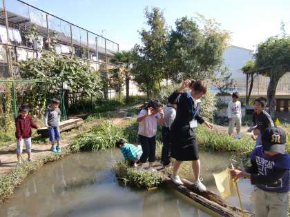 ビオトープの池でザリガニをねらうひょうきんな猛者も登場しました。