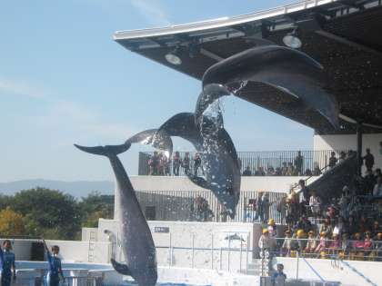 爽やかな秋晴れのもと,1年生と一緒に京都水族館と梅小路公園へ行ってきました。まず,お待ちかねの「イルカショー」を見学しました。迫力満点のイルカのジャンプは,「ウォー!」という歓声と共に場内は拍手喝采でした。クラス写真も笑顔でハイ・ポーズ!!