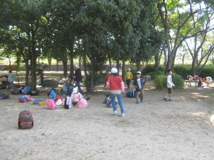 おにごっこや落ち葉拾い,水のわき出る所での水遊びなど思い思いに楽しく過ごしました。暑くもなく寒くもなく本当にいい気候でした。