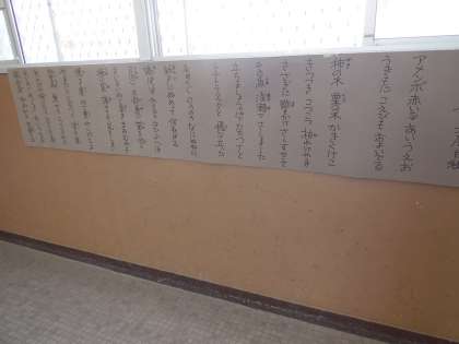 4年生の詩の暗唱は「アメンボ 赤いな あいうえお」で始まる,北原白秋の「五十音」です。校長先生に聴いてもらって,合格を目指します。