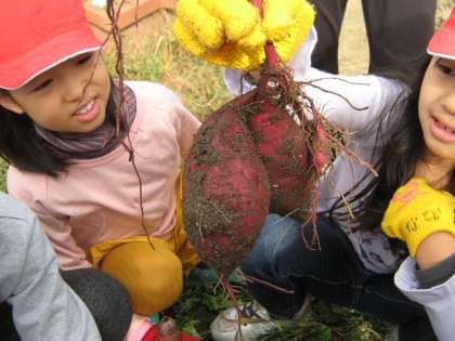 大きなお芋がたくさんできて,大喜びの子ども達でした。地域の方に今日もお世話になり,感謝しております。ありがとうございました。