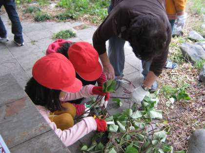 またまた地域の方に教えていただき,さつまいものツルをはさみで切り,とても美味しく料理していただきました。子ども達もおいしく味見をさせていただきました!ごちそうさま!