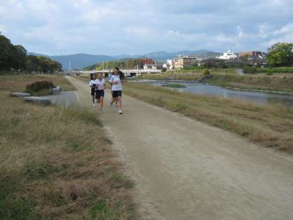 運動場のトラックだと,何周は速く走って,何周はペースを保って・・・と考えながら走っていましたが,加茂川は直線コースです。