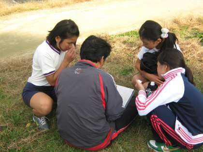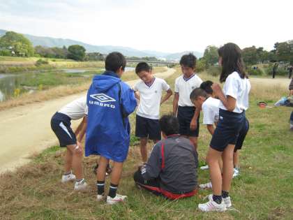 計2回走って記録をつけます。学校で走るよりも難しいと感じたようでした。