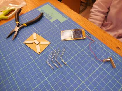 工房学習では,ソーラーパネルで動くおもちゃを作りました。