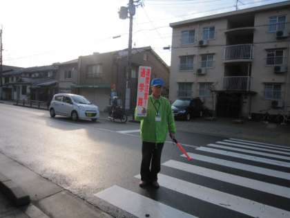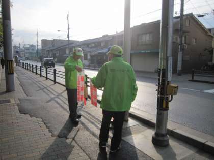 昨日教育委員会からもらった「交通啓発用ハンドプレート」を見守りたいの皆様に利用してもらいます。さっそく朝から使ってもらいました。屋外ではこのプレートのピンクの文字「速度注意!通学路」の文字が目立っています。