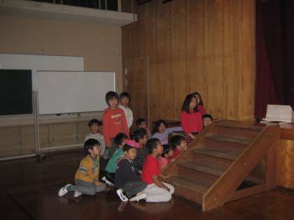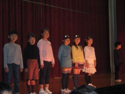 2年生がステージを使って練習していました。小さな赤い魚がひっそりと岩陰で隠れてる場面の姿が上手でした。