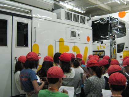 スタジオ見学をしながら、テレビ番組ができるまでのお話を聞きました。聞いたことはしっかりメモ!熱心に〜そして楽しく学習できました。