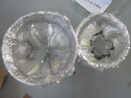 さらにアルミニウム箔をビーカーに張り,塩酸と水酸化ナトリウムをたらして反応を観察しました。