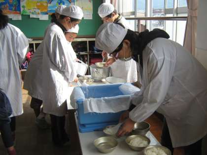 最初の配膳で配り切れてしまうほど,給食をおいしくいただいています。