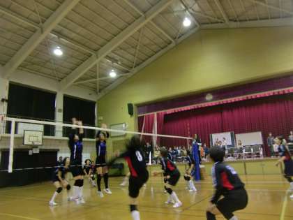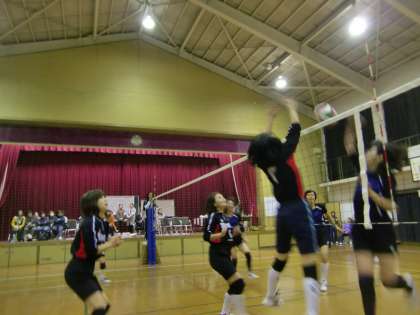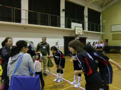 11月10日(土)第三錦林小学校の体育館で左京南支部PTAバレーボール交歓会が開幕しました。今日はBチームで明日はAチームとパパさんのXチームの試合です。